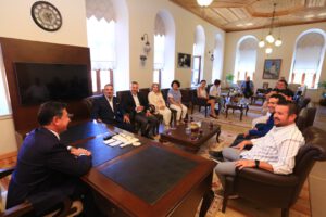Başkan Ahmet Aras Bodrum’dan gelen heyeti samimiyetle karşılayıp teker teker hoşgeldiniz dedi.
