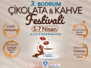 Oasis Bodrum, 5-7 Nisan tarihleri arasında çikolata & kahve alışveriş sokağı, çeşitli atölyeler, kahve altı sohbetleri, gün boyu Dj performası ve barista şovu ile ziyaretçilerine unutulmayacak anlar yaşatacak.