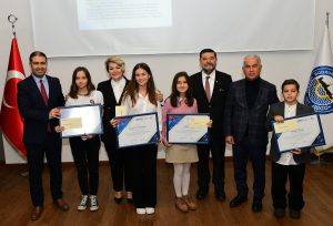 Konuşmaların ardından Ortaokul şiir kategorisi 1’incisi Selma Ece “Cumhuriyet” isimli şiirini okurken, Lise Kompozisyon kategorisi 1’incisi Zeynep Ece Gündoğan da “Cumhuriyet’e Borcumdur” isimli kompozisyonunu okudu. Öğrencilerin Cumhuriyet ve Atatürk temalı eserleri salonda duygusal anlar yaşattı.