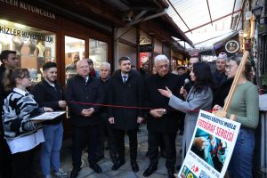 Konuşmaların ardından protokol üyeleri tarihi çarşıda sergilenen fotoğrafları inceleyerek eser sahiplerinden fotoğraflar hakkında bilgi aldı.
