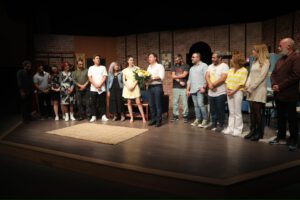 BŞT Oyuncusu Barış Hayta ve oyunun yönetmeni Ali Şahin, Limonata’nın sahnelenmesindeki katkılarından ötürü kişi ve kurumlara teşekkür ederken fiili olarak oyunun çıkmasına emek verenleri sahneye çağırdı.