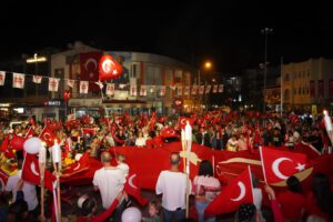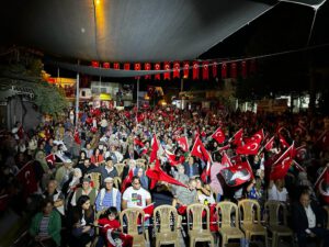Selimiye’de ise binlerce kişi, saat 19.30’da belediye ek hizmet binası önünde toplanarak 100. yıl coşkusunu hep birlikte yaşamak için bir araya geldi. Ellerinde Türk bayraklarıyla davul ve zurna eşliğinde Selimiye sokaklarında ilerleyen vatandaşlar, saatler 20.30’u gösterdiğinde sahneye çıkan Cevdet Bağca’nın eşsiz şarkılarıyla Cumhuriyetin 100. yılını kutladı. Günün anısına Milas Belediye Meclis Üyesi Mustafa Özgülergil’den plaket teslim alan ünlü şarkıcı Cevdet Bağca, plaketi alanda bulunan bir çocuğa hediye etti.