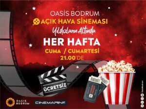 OASIS Bodrum Açık Hava Sineması, Cinemarine işbirliğiyle 28 Haziran itibariyle her hafta Cuma ve Cumartesi günleri saat 21.00’de Oasis Meydan’da ücretsiz olarak sinemaseverlerle buluşuyor.