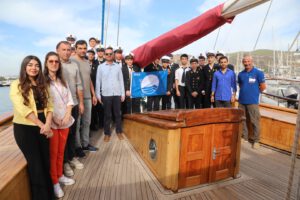 Bodrum Belediyesi Destek Hizmetleri Müdürlüğü Mavi Bayraklı Plajlar Bürosu tarafından kaptan olacak öğrencilere, 25 Ekim Çarşamba günü Denizciler Derneği önündeki STS Bodrum Okul Gemisi’nde mavi bayrak eğitimi verildi.