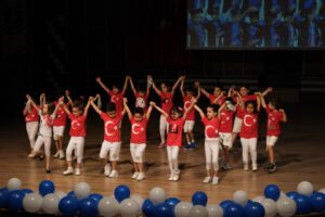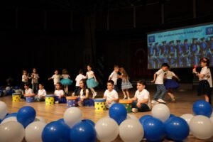 Yıl sonu gösterisinde çocuklar, yıl boyunca hazırlandıkları gösterileri sergilerken veliler ve öğretmenler gösterileri ilgiyle izledi.