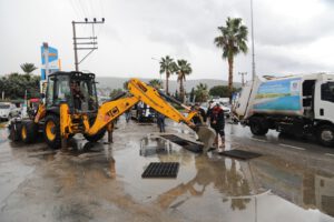 Bodrum Belediyesi ekipleri, aniden yağan yağmurun taşkına neden olmaması için yağış anında mazgallarda temizlik yaptı. Bodrum Belediye Başkanı Ahmet Aras da ekiplere eşlik ederek sahada vatandaşların talep ve ihtiyaçlarına yönelik çalışma gerçekleştirdi.
