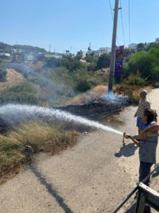 Sulama aracı ile Bodrum’dan Turgutreis istikametine doğru giden belediye personeli, Yahşi Kavşağı yakınlarında yol kenarında başlayan yangını fark etti. Bölgeye yönelen ekip, otluk alandan başlayarak makilik alana sıçrayan yangına hemen müdahale etti. Yangın, ağaçlık alana sıçramadan vatandaşların da desteği ile söndürülürken soğutma çalışması da gerçekleştirildi.
